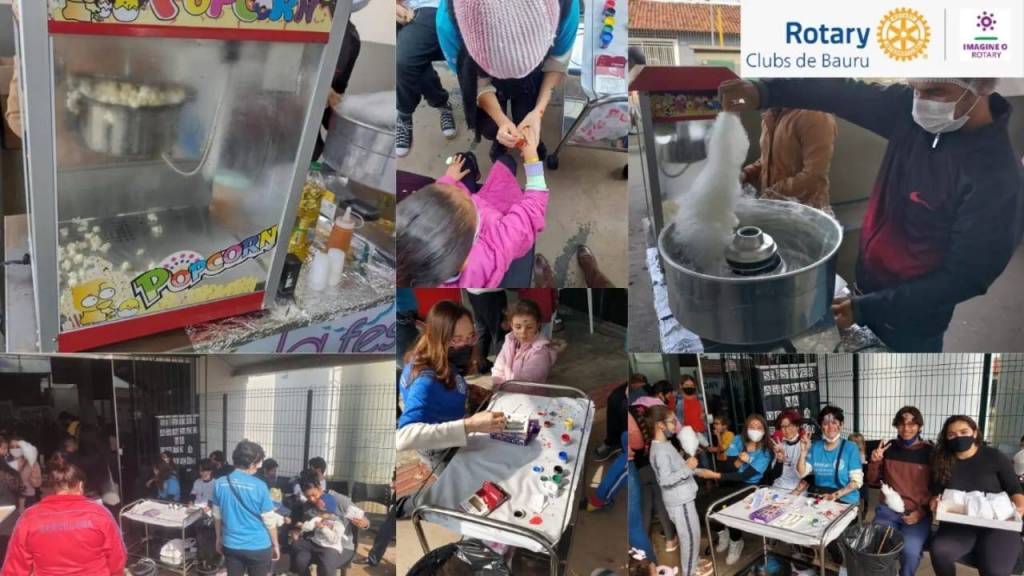 Os seis Rotary Clubs de Bauru e o Interact de Bauru-Aeroporto, juntos com a Secretaria Municipal de Saúde, estiveram presentes nos Posto de Saúde da Vila Nova Esperança e Jardim Jussara distribuindo pipoca, algodão-doce e fazendo pintura facial nas crianças e adolescentes que receberam as vacinas.