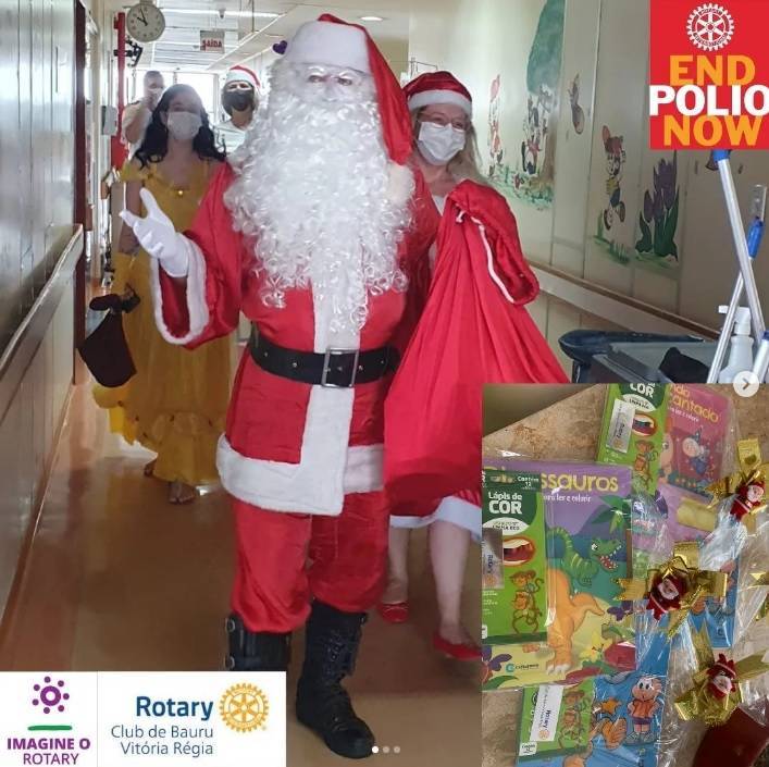 No dia 12/12/2022, o Rotary Club de Bauru-Vitória Régia, junto com o Grupo Alegria e funcionários do Hospital Estadual de Bauru entregaram Livros de Pintura com estojos de lápis coloridos para as crianças internadas no Setor de Oncologia Infantil.
