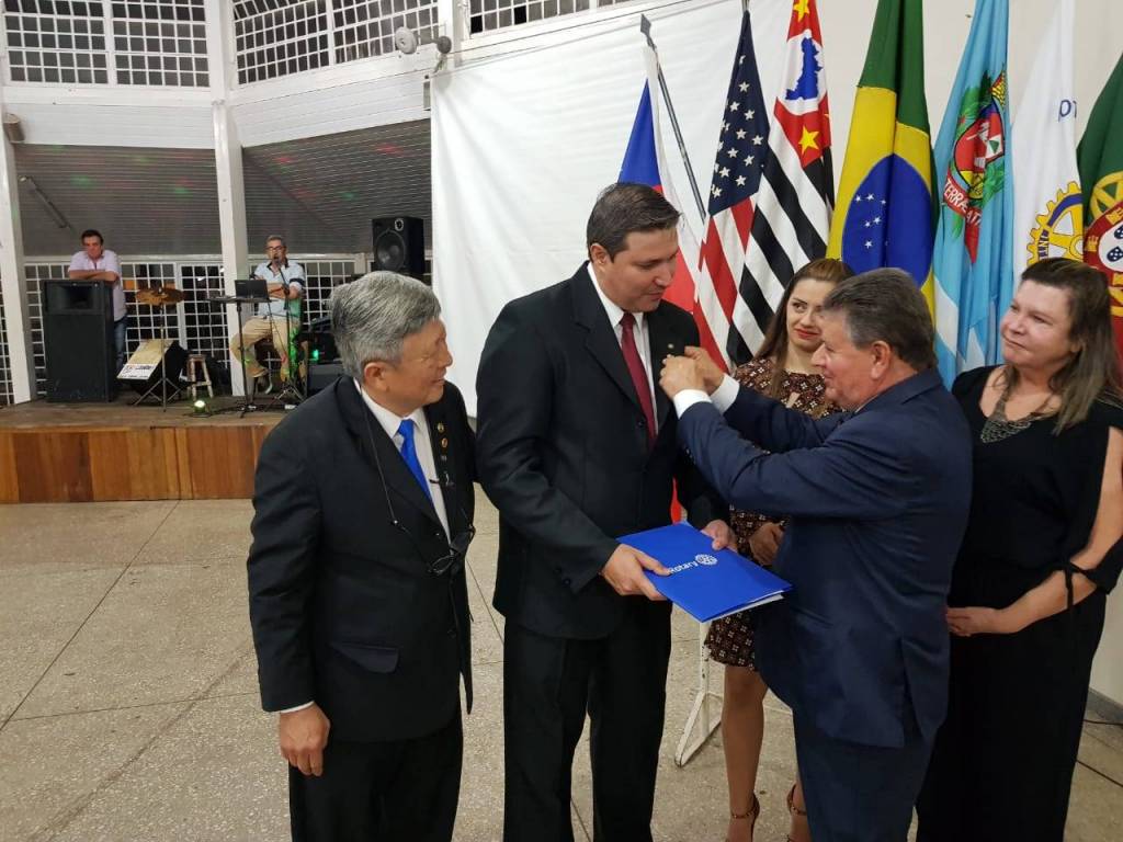 Durante as atividades, a noite ficou inda mais ilustrada com a Posse do novo associado, Cp. Alexsandro Gomes Lopes, administrador de empresas, sócio proprietário da empresa Alex Cell Celulares em Assis, sendo apadrinhado pelo Cp. Mario Haruo Maeda, que o apresentou e fez a leitura de seu curriculum. Na ocasião, os familiares do novo associado Alexsandro estiveram presente para prestigia-lo, como também a presença do Governador do Distrito 4.510, ano rotário 2018-19, João Evangelista Pereira e esposa Vania, que fizeram questão de entregar ao novo associado, o lema rotário do ano.