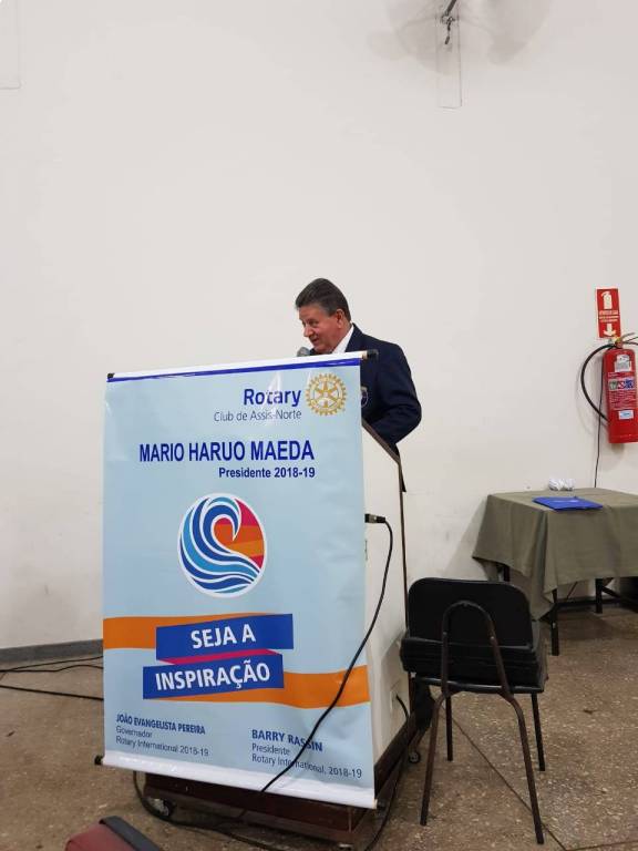 “É salutar e muito emocionante estar presente nesta solenidade de posse de novo associado, e ainda de entrega de tantas comendas da nossa Fundação Rotaria. O Rotary Club de Assis-Norte está sendo a inspiração neste ano Rotário, através de seu presidente Mario Haruo Maeda, e, muito bom também é poder participar deste momento impar na vida do Casal Solange e Ricardo Bermejo, que recebem a comenda “Major Donors” por doações a nossa Fundação Rotaria. Mostra a consciência da importância de nossa fundação, e ainda inspira a todos os companheiros a continuar contribuindo com a nossa instituição. Parabéns!” explanou o Governador D.4510, ano rotário 2018-19, João Evangelista Pereira.
