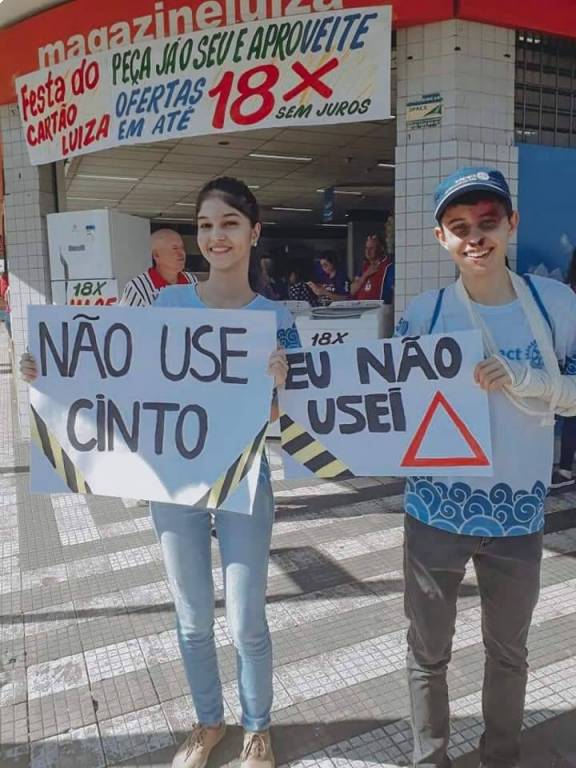 Posicionamos 2 interactianos em cada semáforo, cada dupla ficava em pontos diferentes e movimentados do município. Um segurava um cartaz dizendo "não use cinto", enquanto o outro, machucado, segurava um cartaz que dizia "eu não usei". O propósito é conscientizar a importância de ações mínimas mas essenciais para a segurança no trânsito, usando a psicologia reversa.