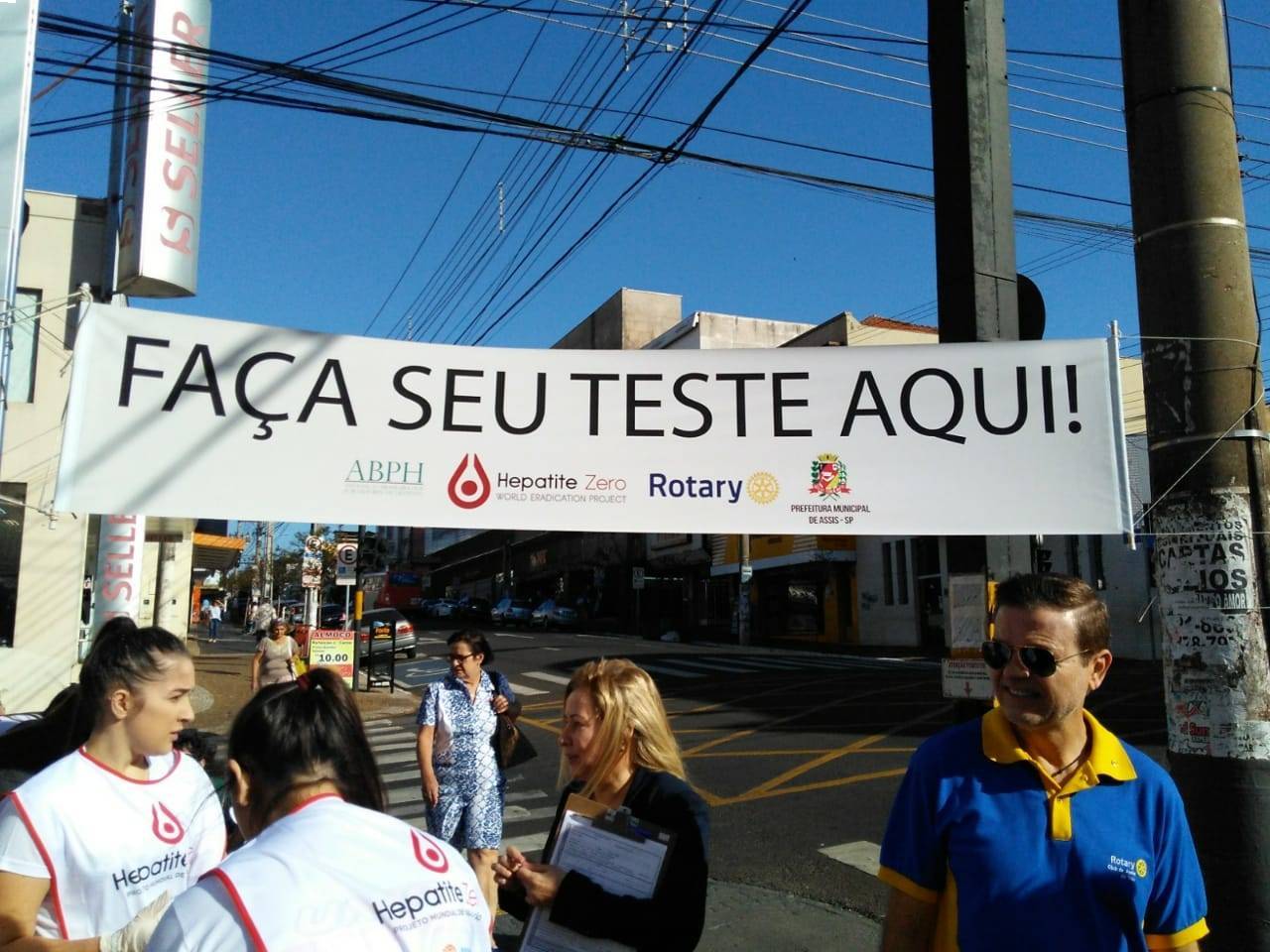 Os 04(Quatro) Rotary Clubs da cidade de Assis (RC Assis / RC Assis-Norte / RC Assis do Vale e RC Assis-Fraternal) e Rotaract Club de Assis-Norte / Intercambiarios realizaram no ultimo dia 27 de julho de 2019, das 8:00 as 12:00 horas na frente da Agencia do Banco do Brasil, localizada na Avenida Rui Barbosa, esquina c/Rua J.V.da Cunha e Silva, na cidade de Assis, SP, Brasil, a CAMPANHA HEPATITE ZERO, sendo atendido mais de 130 exames, e auferido pressão arterial de mais de 50 pessoas.