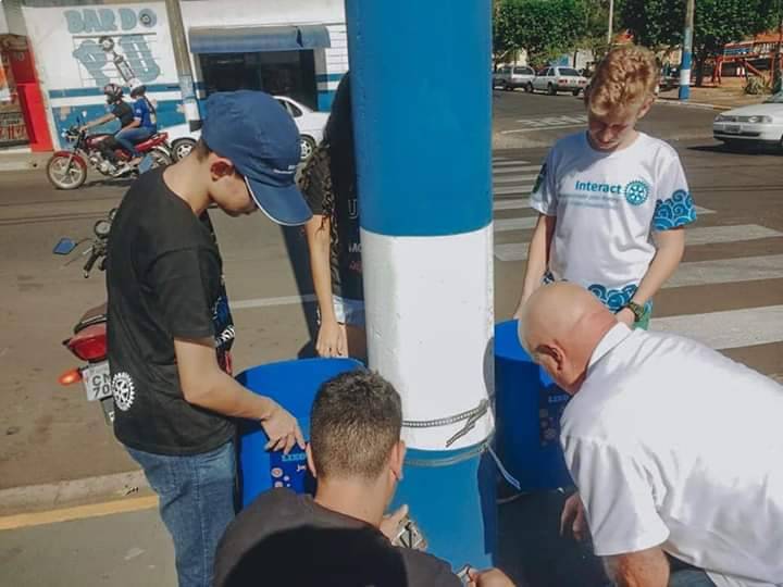 Na tarde de sábado, dia 24 de agosto, o Interact Club de Osvaldo Cruz colocou lixeiras em novos pontos da cidade, incentivando o descarte consciente de lixo.
