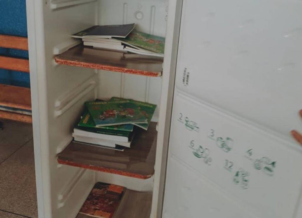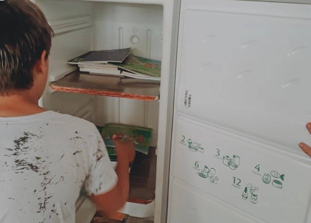 Reformamos uma geladeira que já não servia mais para sua utilidade original, adicionamos prateleiras, enfeitamos com adesivo na parte da frente e enchemos com livros infantis. É a terceira geladeiroteca produzida pelo Interact Club de Osvaldo Cruz, essa, atualmente, encontra- se em Sagres - SP, uma cidade vizinha à sede do clube.