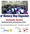 Dia 09 de Outubro de 2019, à partir das 08:00 horas até as 17:00 horas, será realizado o ROTARY DAY ESPECIAL - INCLUSÃO SOCIAL, com os alunos das APAES de Assis e Região e Projetos SIM AO DEFICIENTE E SER.