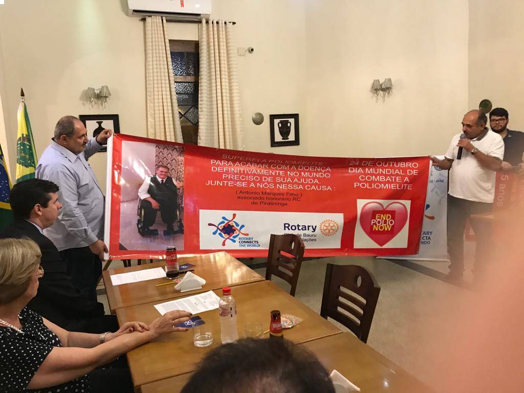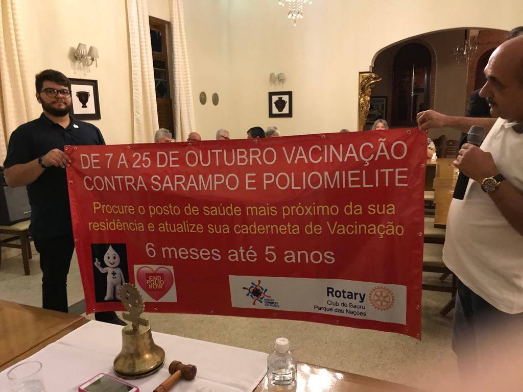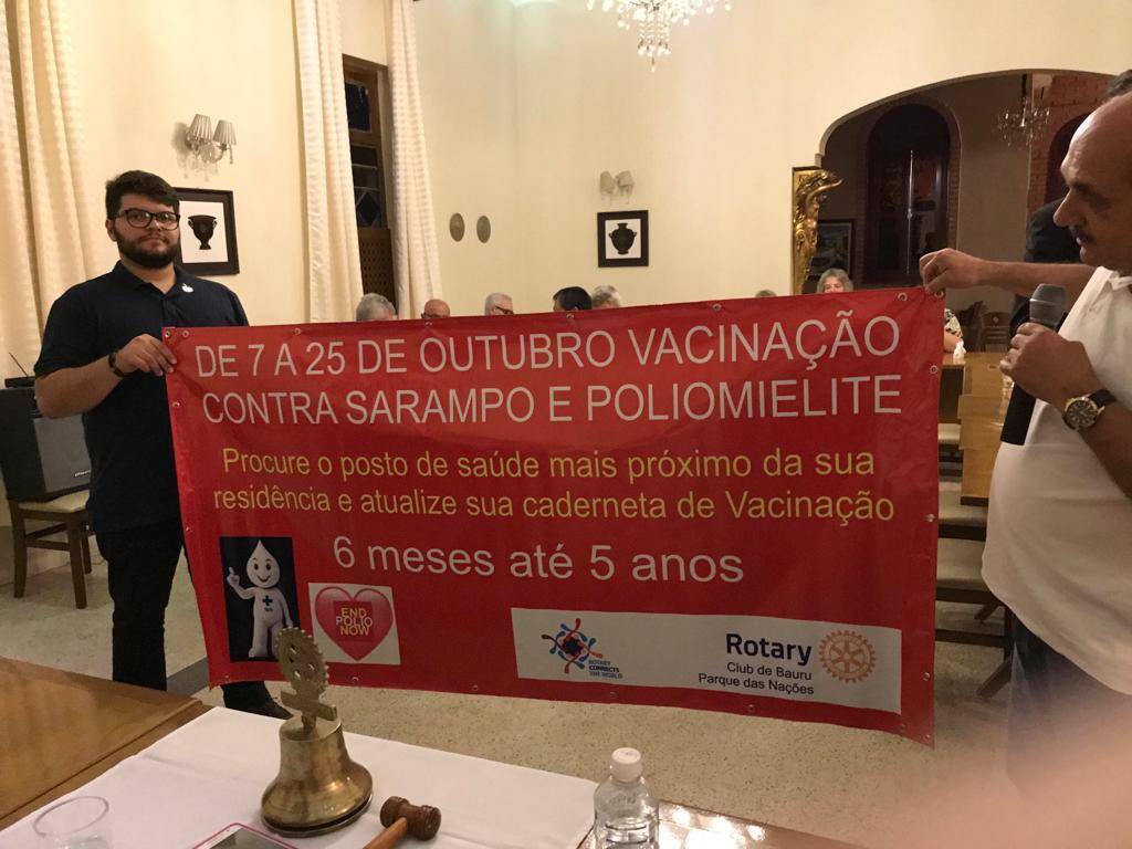 Em nossa reunião, em 09/10, foi apresentado aos Companheiros, os banners da campanha de vacinação contra o Sarampo e a Poliomielite, e Dia Mundial de combate a doença, END POLIO NOW, 24/10.