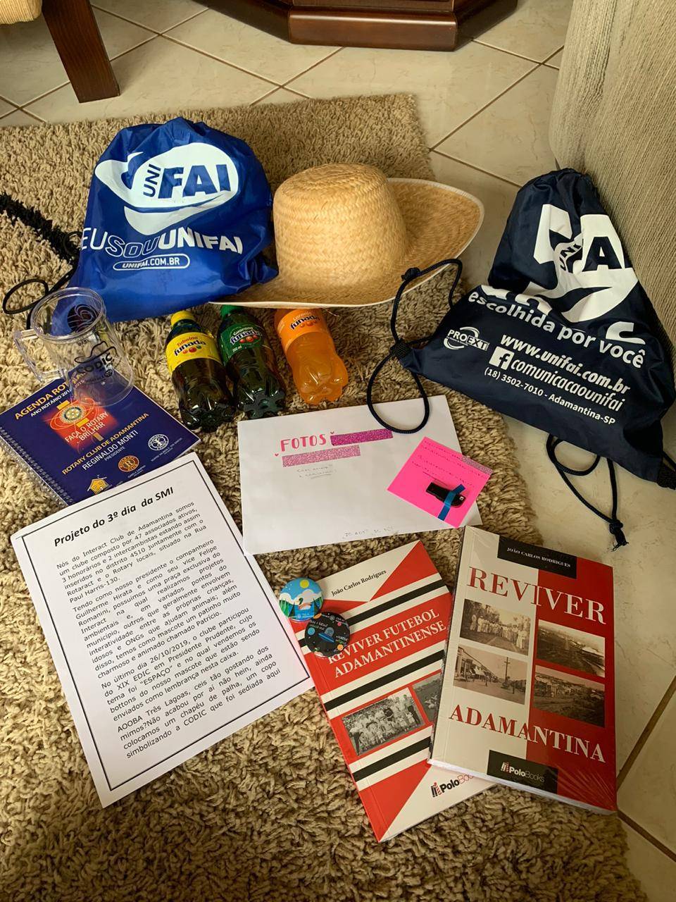 Para o 3º Dia da SMI 2019, o Interact Club de Adamantina enviou uma caixa recheada de coisas típicas e culturais da cidade e da região. O clube enviou Funadinha, Kits da UNIFAI ( faculdade municipal ), dois livros contando sobre Adamantina escritos pelo Rotariano João, muitas fotos e vídeos, além de muitas outras surpresas. Tudo isso foi enviado para o Interact Club de Três Lagoas, Distrito 4470.