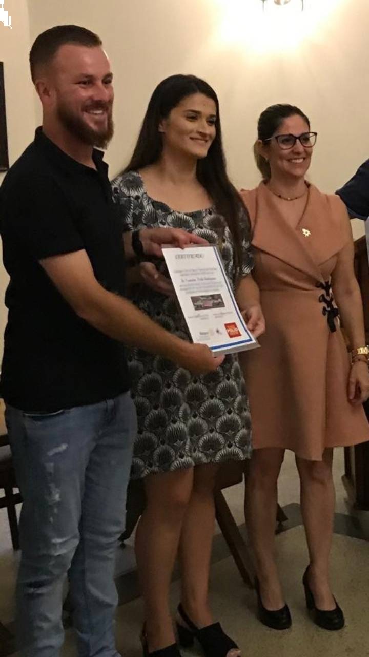 Em nossa reunião de 04 de Dezembro , prestamos homenagem ao Centro de formação de atletas FOGUINHO SPORTS DE BAURU, através de seu Diretor Técnico, Sr. Leandro Ávila Rodrigues, pela divulgação de nossa campanha em prol do combate a Poliomielite no mundo. Na foto, nossa presidente Gisele Evangelista da Silva Santos, entrega um Certificado de Reconhecimento, ao Sr. Leandro Ávila Rodrigues e sua esposa, Anaila Pereira Rodrigues.
