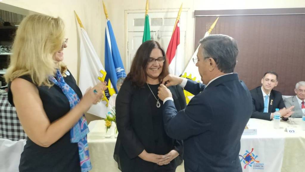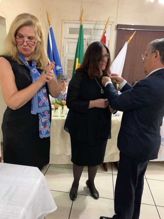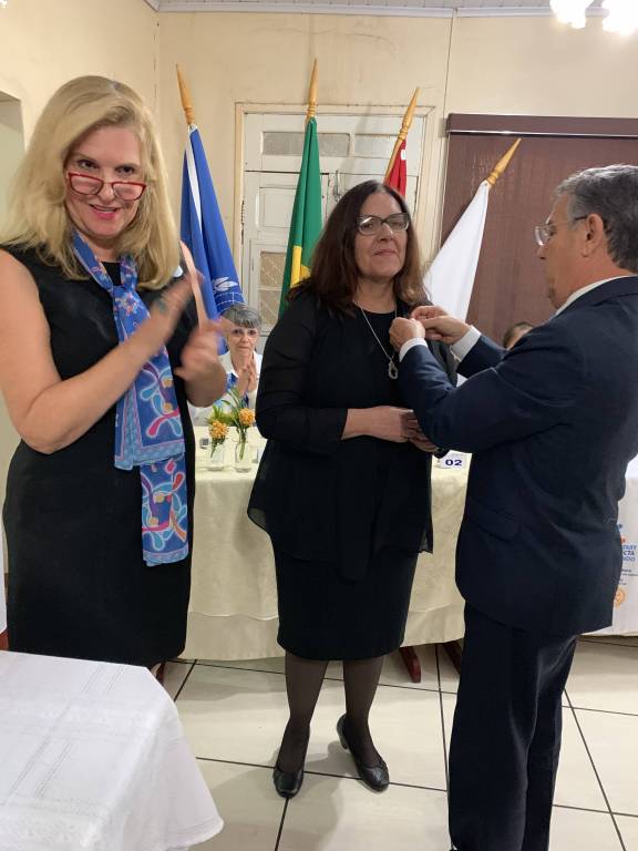 Posse da companheira Eliana Edérli Dias Chaves, na reunião festiva da visita do Gov. Marcos Antonio Carchedi dia 01/10/19, Eliana tem como madrinha a comp. Deborah Pereira do Lago Bezerra. Na ocasião o comp. do RCPP Norte falou sobre sua afilhada.Nossa alegria não se deve apenas aos grandes momentos que desfrutaremos,mas, também, ao apoio que prestará , na implementação de vários projetos,que ajudarão a tornar nossa comunidade, nosso país nosso mundo um melhor lugar para se viver. Seja bem- vinda Eliana.
