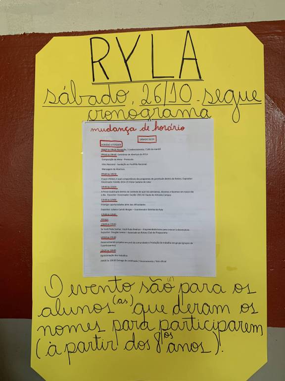 RYLA realizado na Escola Estadual Dr José Fóz pelo RCPP Rosa dos Ventos e RCPP Leste dia 26/10/19
