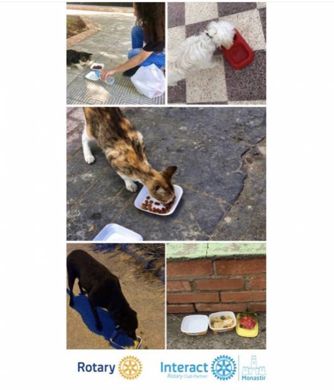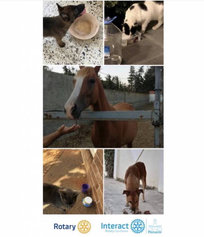 O Interact Club de Monastir, na Tunisia nos convidou para participar de uma ação que consistia em ajudar animais de rua, na qual tivemos que colocar na frente da casa de um, um recepiente com ração e água e fotografar.
