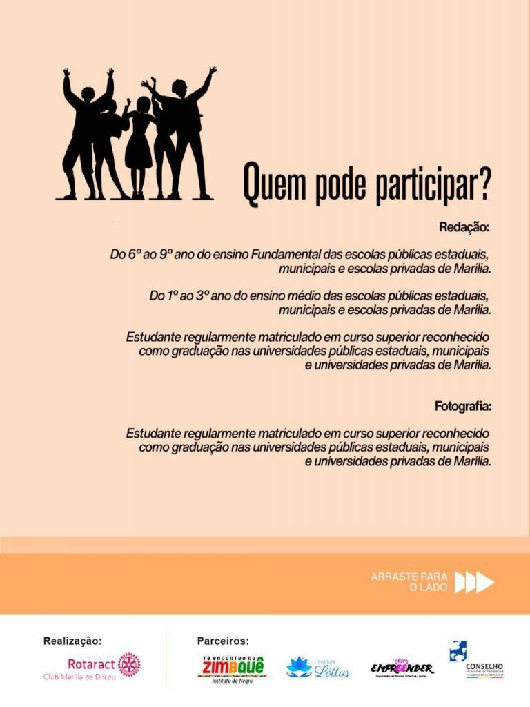 O projeto é um concurso de textos e fotografias contra o racismo e é realizado em parceria com o Instituto Zimbaue, o Conselho Municipal de Promoção da Igualdade Racial de Marília, o Instituto Lóttus e o Grupo Empreender.