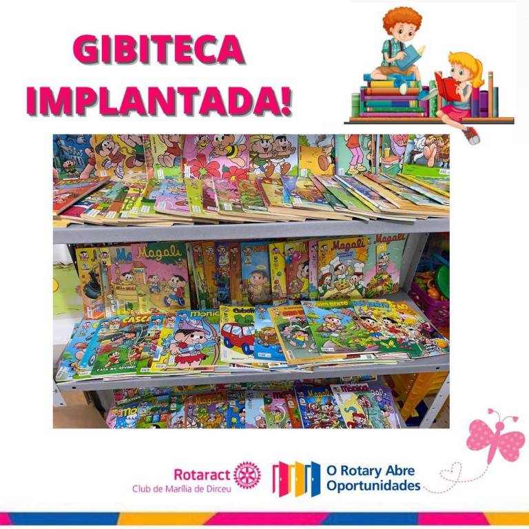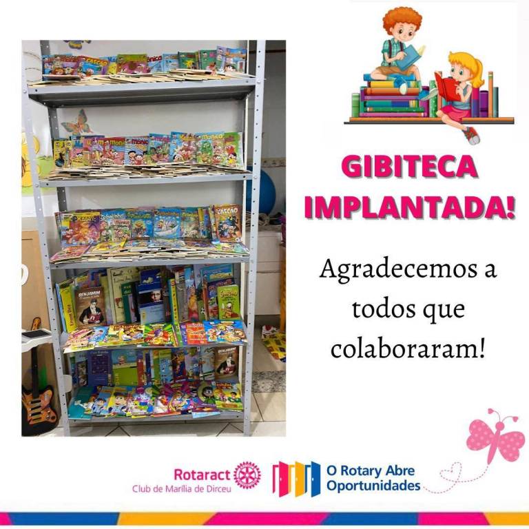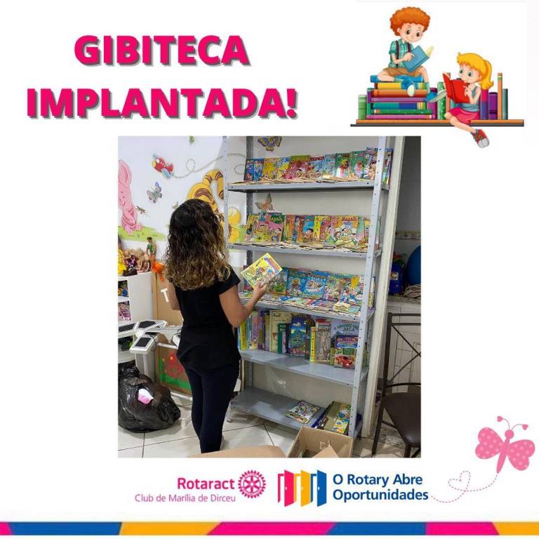 Em razão do dia das crianças o Rotaract Club Marília de Dirceu realizou a doação de uma gibiteca para o CACAM (Centro de Apoio a Criança e ao Adolescente de Marília).